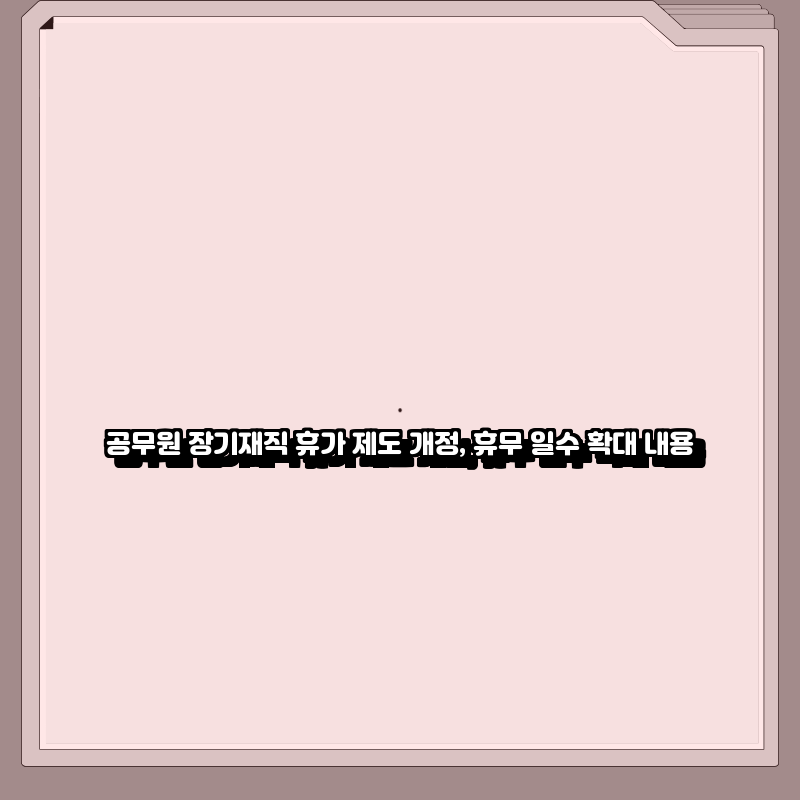 최근 공무원 장기재직 휴가 제도가 개정되면서 많은 공무원들이 기대하고 있는 휴무 일수 확대에 대한 이야기를 해보려 합니다. 이 글에서는 새로운 제도의 세부 사항과 그로 인해 기대되는 변화에 대해 자세히 설명하겠습니다.