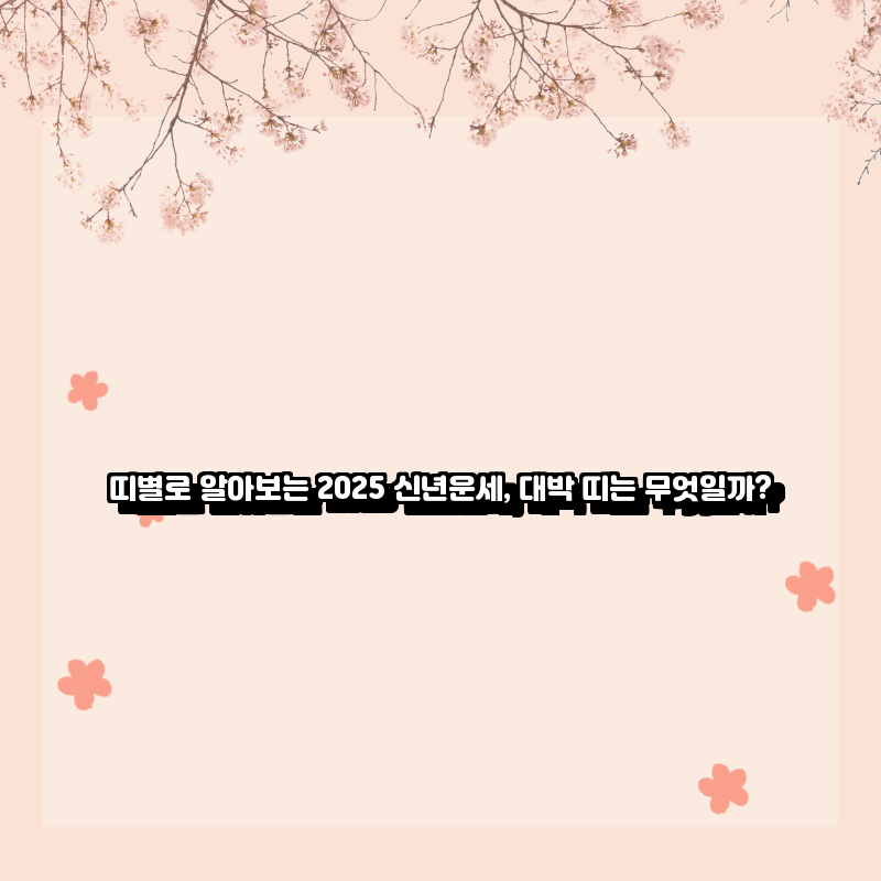 2025년이 다가오고 있습니다. 많은 사람들이 새해를 맞이하며 다가오는 해에 대한 기대와 희망을 품고 있습니다. 특히, 띠에 따른 운세는 많은 이들에게 큰 관심사입니다. 이번 포스트에서는 각 띠별로 2025년 신년운세를 살펴보고, 특히 어떤 띠가 대박을 맞이할 가능성이 높은지 알아보겠습니다.