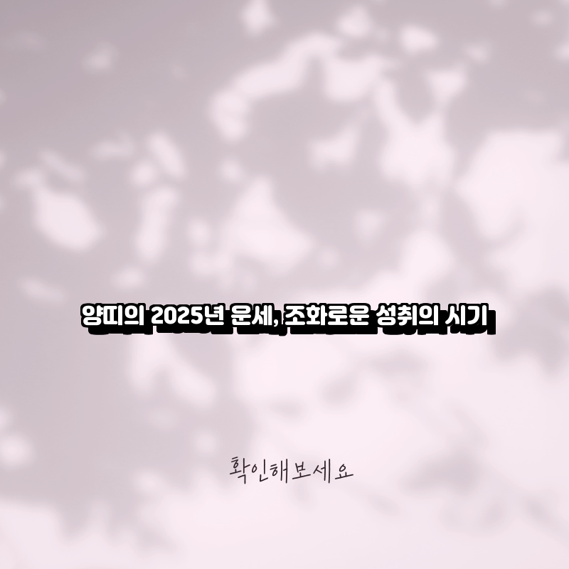 2025년, 양띠에게는 조화로운 성취의 기운이 넘쳐나는 해가 될 것입니다. 이 시기는 개인의 노력과 주변의 지원이 조화를 이루어, 많은 성과를 얻을 수 있는 기회가 될 것입니다. 이번 글에서는 양띠의 2025년 운세를 다양한 섹션으로 나누어 자세히 설명드리겠습니다.