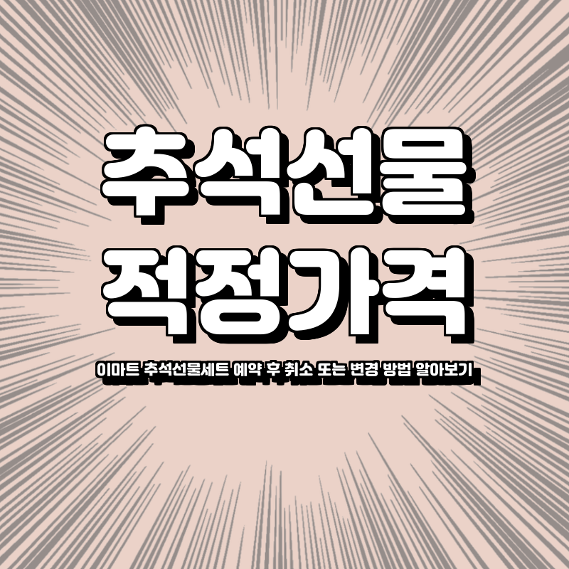 이마트에서 추석선물세트를 예약 후 취소 또는 변경하는 방법은 매우 간단합니다. 매장을 직접 방문하거나 웹사이트를 통해 손쉽게 처리할 수 있습니다. 자세한 절차를 알아보시면 더욱 유용할 것입니다.