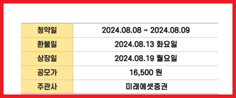A3: 전진건설로봇 공모주 청약일은 8월 8일부터 8월 9일까지이며, 환불일은 8월 13일, 상장일은 8월 19일로 예정되어 있어요.