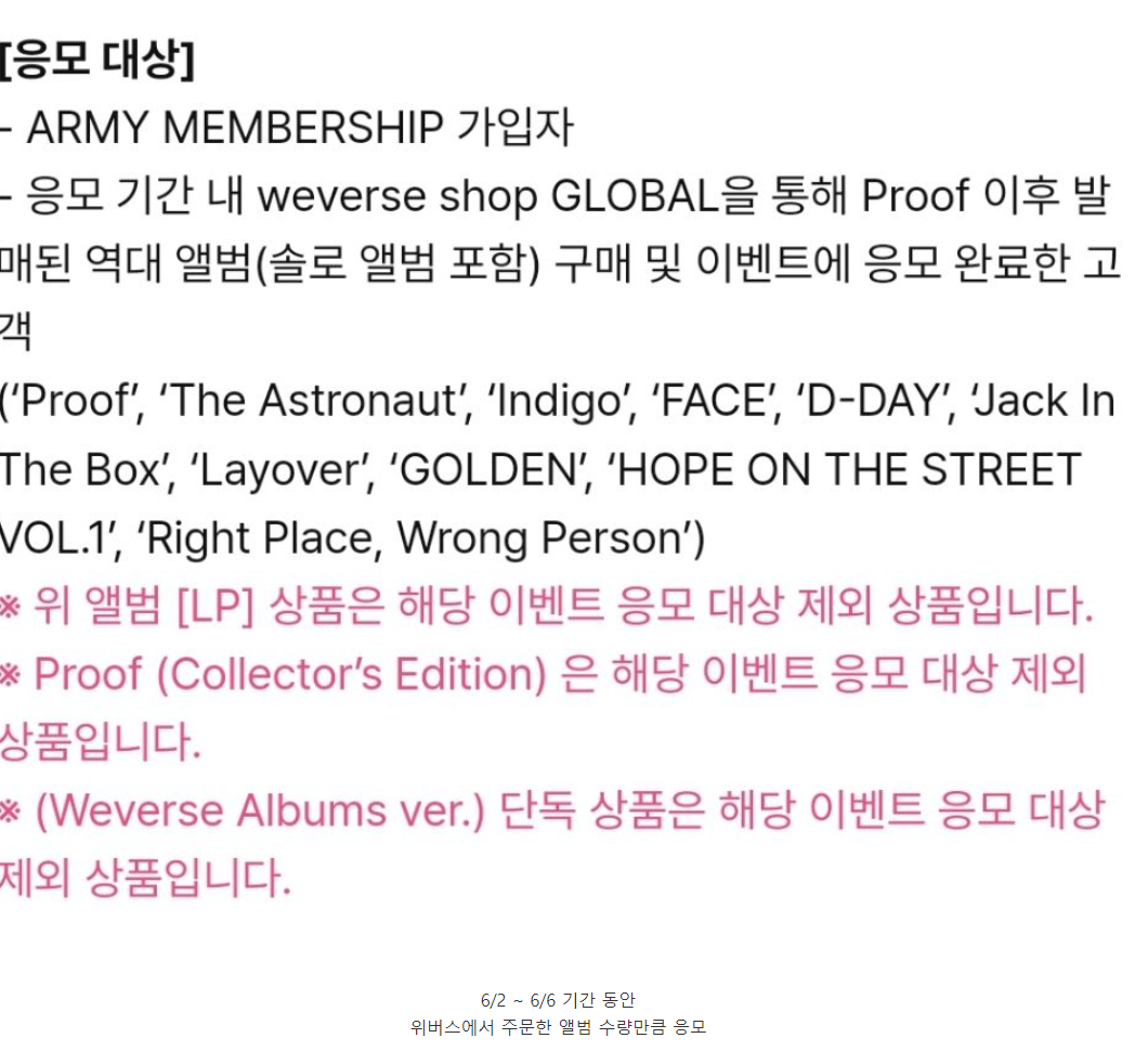 - 응모 조건: 기존 앨범 구매자 포함