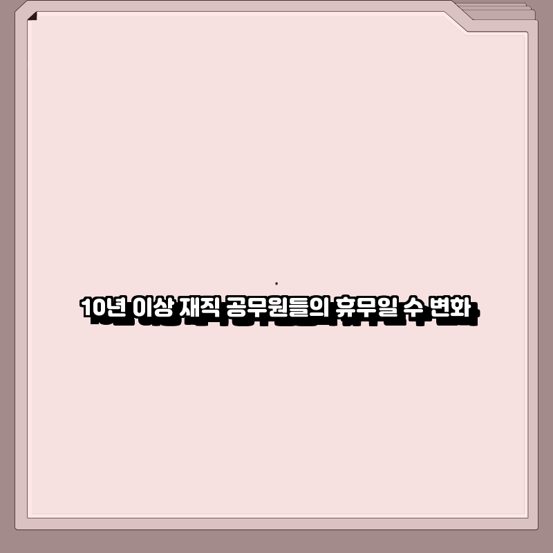 10년 이상 재직한 공무원들의 휴무일 수 변화는 단순한 숫자의 증가를 넘어, 그들의 삶의 질을 향상시키는 데 큰 영향을 미치고 있습니다. 앞으로도 이러한 변화는 계속될 것으로 기대되며, 공무원들이 보다 건강하고 행복한 삶을 영위할 수 있도록 하는 정책이 필요합니다.