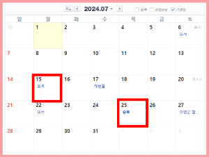 - 초복: 양력 7월 15일(월), 음력 6월 10일