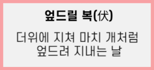 - 중복: 삼복 중 두 번째 경일로, 음력 6월 20일에 해당합니다.
