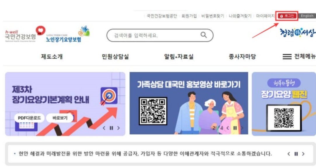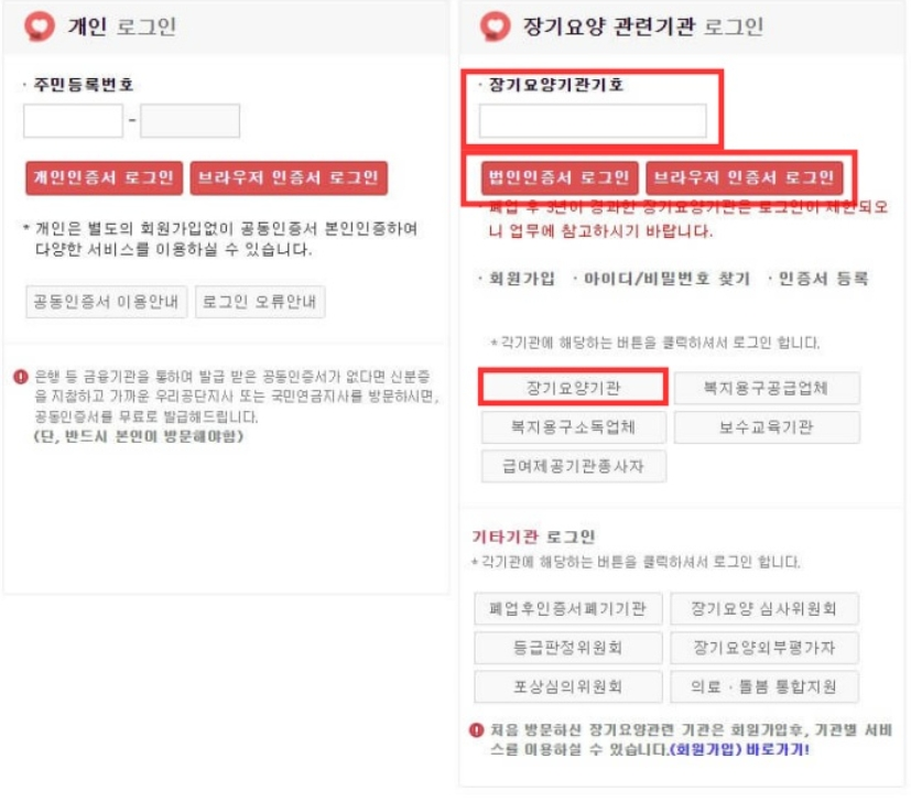 - 장기요양기관 인증서로 로그인