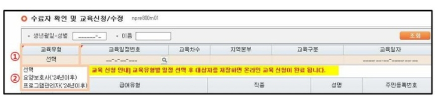 - 교육 대상자 선택 및 개인 정보 입력