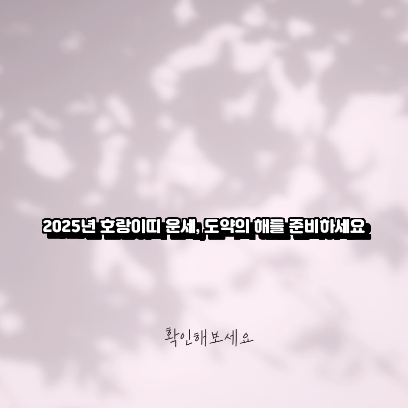 새로운 도전을 위해 마음가짐을 새로이 하고, 긍정적인 에너지를 잃지 않도록 하세요. 2025년 호랑이띠의 행운을 기원합니다!