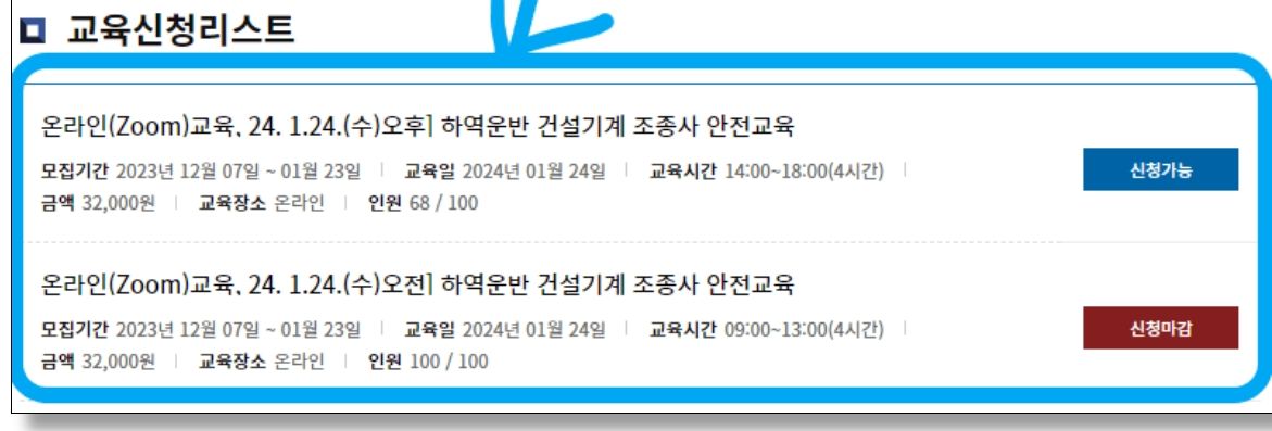- 온라인 또는 오프라인 교육 선택 및 신청