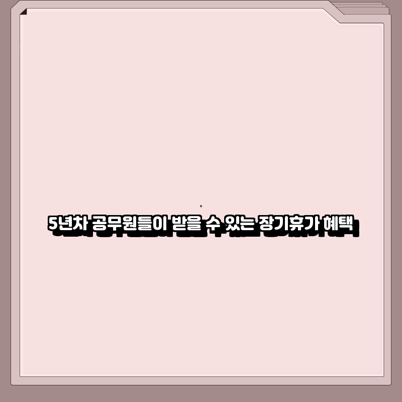 공무원이라는 직업은 안정성과 복리후생 측면에서 많은 장점을 제공합니다. 특히, 5년차 공무원들은 다양한 장기휴가 혜택을 누릴 수 있는 권리가 주어집니다. 이번 글에서는 5년차 공무원들이 받을 수 있는 장기휴가 혜택에 대해 자세히 알아보겠습니다.