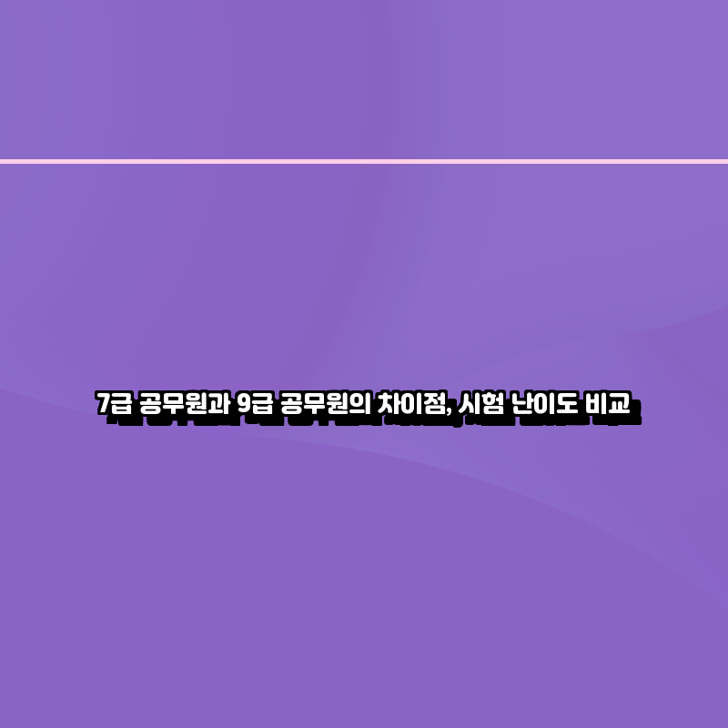 7급과 9급 공무원 시험은 각각의 특징과 차이점을 가지고 있습니다. 승진 소요 연수, 경쟁률, 시험 과목, 봉급, 근무처 등에서 차이를 보이며, 특히 시험 난이도와 행정법 시험의 차이점은 준비하는 분들에게 중요한 정보입니다. 각급의 특성을 이해하고, 적절한 준비와 대처방안을 통해 성공적인 시험 준비를 할 수 있도록 노력해야 합니다.